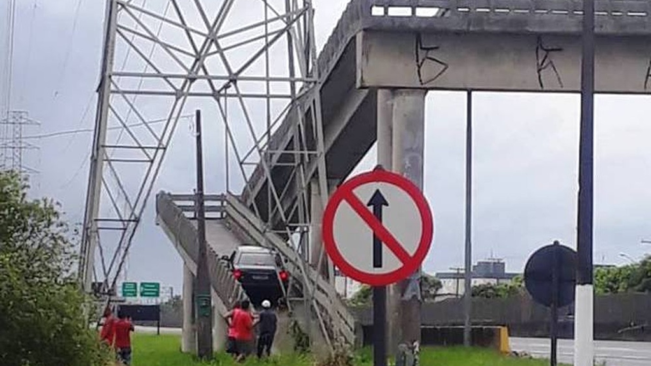 A polícia informou que o motorista acreditou que a passarela fosse um viaduto que interligaria os bairros localizados na região da praia com os próximos à Serra do Mar.