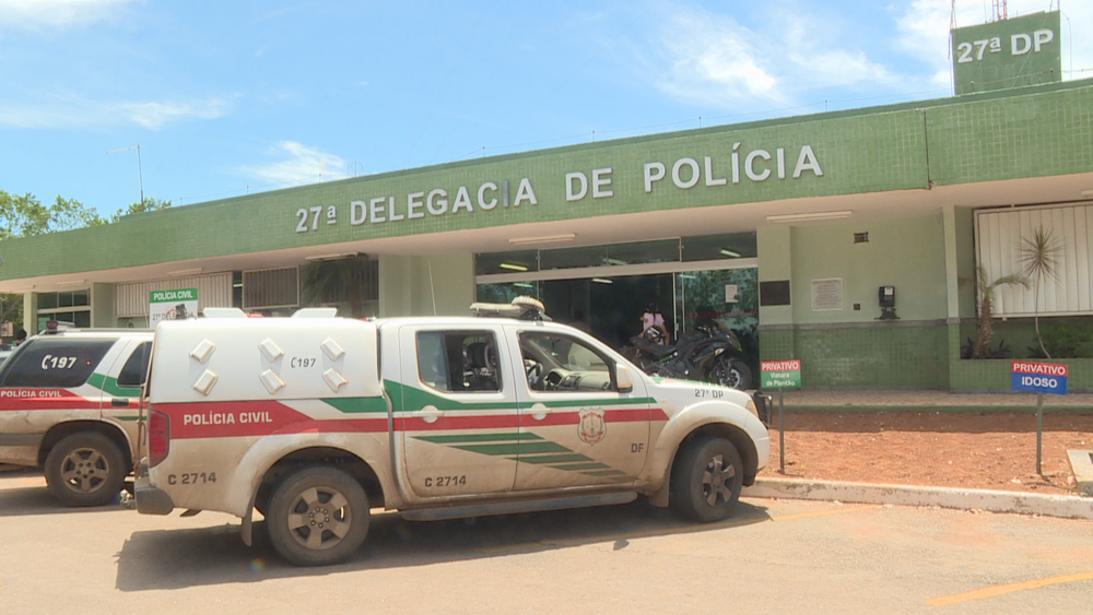 Fachada da 27ª Delegacia de Polícia, no Recanto das Emas, no Distrito Federal — Foto: TV Globo/Reprodução