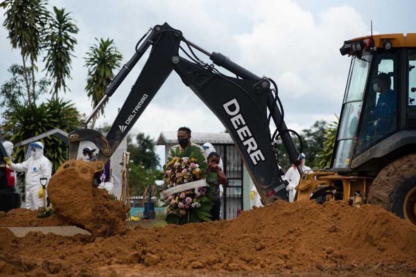 Enviados especiais a Manaus – Quatro minutos e 58 segundos. Esse foi o tempo exato – da autorização do coveiro à colocação da coroa de flores na sepultura – que Alexandre Pereira, de 32 anos, teve para se despedir da mãe, vítima da Covid-19, na tarde desse sábado (15/1), no cemitério Nossa Senhora Aparecida, em Manaus (AM).