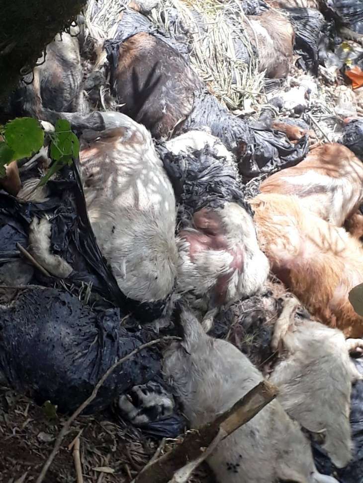 Cerca de 30 animais, entre cabras e cachorros, foram encontrados às margens de uma estrada