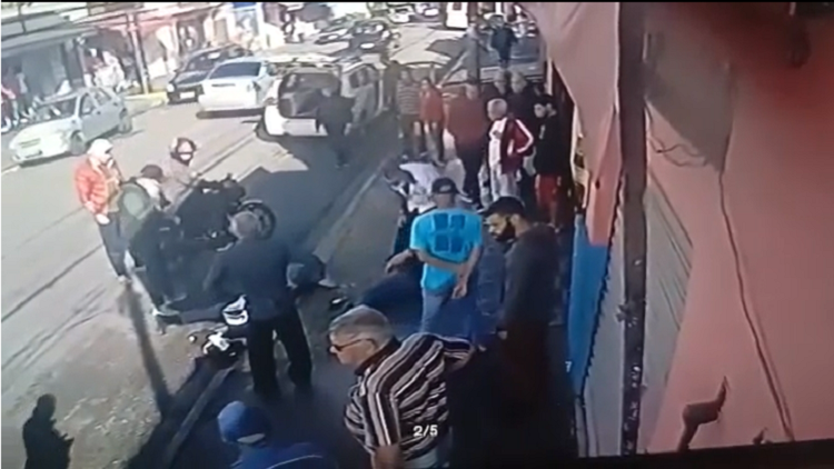 Dois policiais militares foram baleados nesta quinta-feira (1°), durante uma abordagem na zona leste de São Paulo. Uma câmera de segurança flagrou o momento no qual um homem consegue se desvencilhar de um dos agentes, inicia uma briga corporal e saca a arma do outro PM.